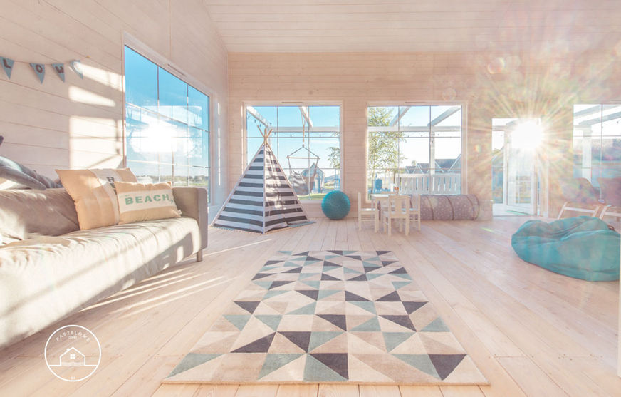 ...пізніше вони знаходять батут, майданчик для пляжного волейболу, м'ячі, ворота та скейтборди. Потім сором’язливо заглядають в ігрову кімнату (це чудово, є телевізор, я буду розповідати казки з ранку до вечора), настільний футбол, дартс, ігри, книги. іграшки та талісмани, ігровий намет та столик для маленьких художників.